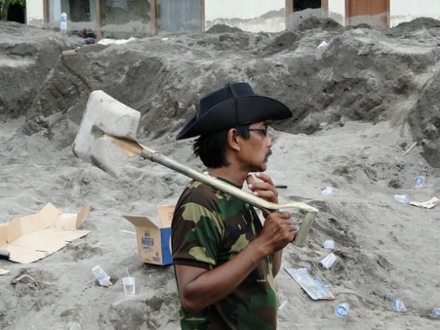 Survivors of the 2010 eruption of Mount Merapi in Indonesia pick through the rubble. Credit: European Commission DG ECHO/CC-BY-ND-2.0