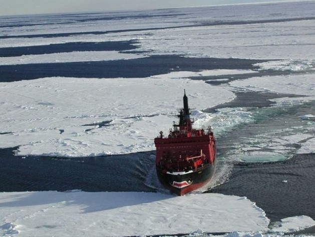 Rising temperatures mean the vast Arctic Ocean, which used to be frozen over for much of the year, is now an open shipping line for more than half the year. Credit: public domain