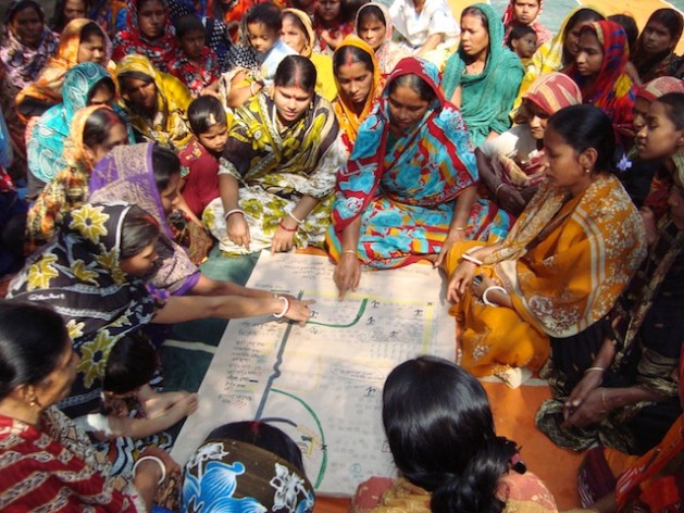 A women-led village council prepares a “social map” of the local community. Credit: Naimul Haq/IPS