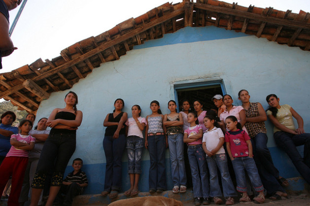 Women and children from the Mexican village where the Esparza family was murdered demand justice outside the schoolhouse. Credit: Mónica González /IPS