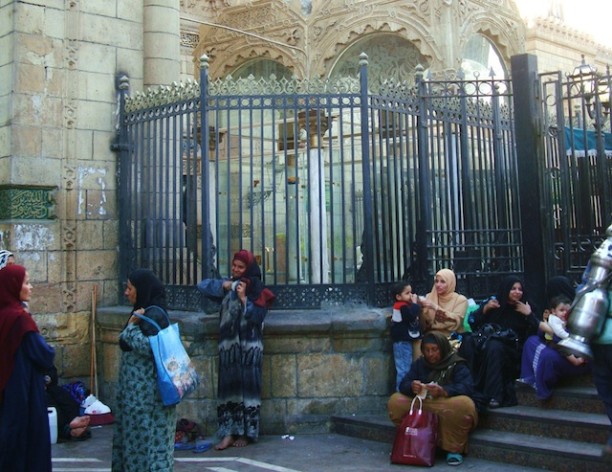 Women gather outside the Sayeda Zeinab mosque in Cairo, revered by Shia and Sunni alike. Credit: Cam McGrath/IPS.