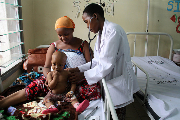 An eight-month-old boy with pneumonia is examined by a doctor at Amana Hospital in Dar es Salaam, Tanzania. Credit: Kristin Palitza/IPS