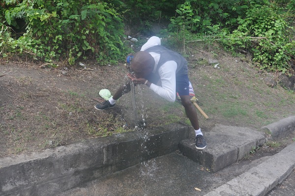 Pat Jones, 65, stops to drink water at a community standpipe in Grenada. Credit: Desmond Brown/IPS