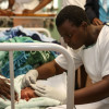 A newborn baby lets out a feeble cry as midwife Anna Mungara tends to a small wound on its head, at the provincial hospital in Masvingo, a town in southeast Zimbabwe.