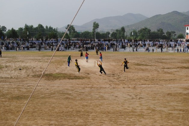 A match at the recent cricket tournament held in Pakistan's northern Federally Administered Tribal Areas (FATA). Credit: Ashfaq Yusufzai/IPS
