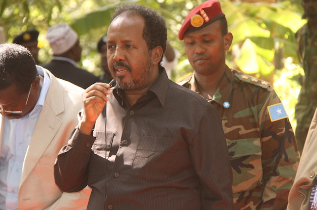 Somali Presdient Hassan Sheikh Mohamud speaking to residents of the central Somalia town of Jowhar, Middle Shabelle province on Sept. 9, 2013. Somali’s are disillusioned by the continued terrorists attacks and lack of service delivery here. Credit: Ahmed Osman/IPS