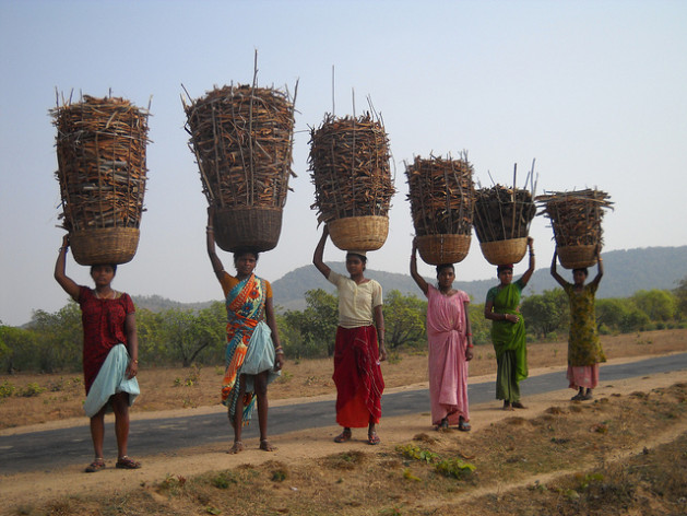 The Bhumia tribal community practices sustainable forestry: these women returning from the forest carry baskets of painstakingly gathered tree bark and dried cow dung for manure. Credit: Manipadma Jena/IPS