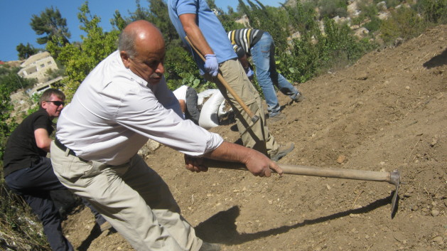 Aweinah ploughs his field with the help of British volunteers. Credit: Pierre Klochendler/IPS.