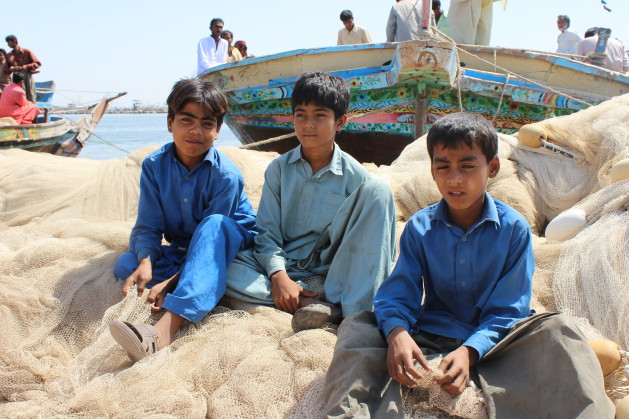Out of school children in Ibrahim Hyderi, a fishing community near Karachi. Credit: Zofeen Ebrahim/IPS.