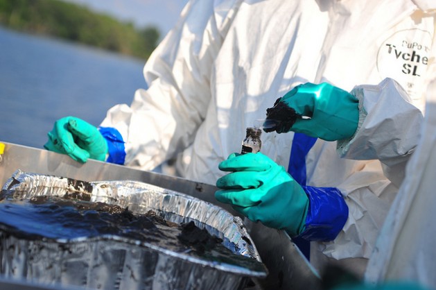 Water and sediment sampling operations during Enbridge Spill Response on Morrow Lake near Battle Creek, Michigan from Mudpuppy II, EPA's news research vessel. Credit: U.S. Coast Guard Petty Officer Second Class Lauren Jorgensen