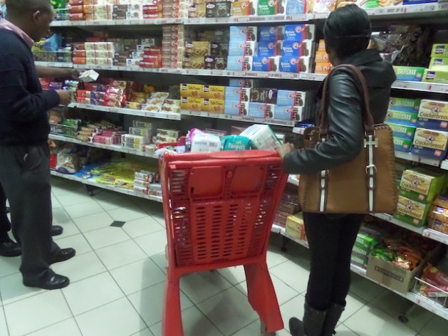 “I can only afford to [buy what is on this] list after almost three months [of saving] because life is hard these days,” Gananda tells IPS as she later emerges laden with groceries to take home.