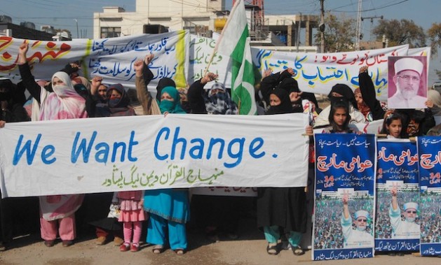 Women and children hold up signs at a rally against corruption in the northern Pakistani city of Peshawar. Credit: Ashfaq Yusufzai/IPS