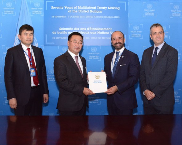 Mongolia depositing ratification of the Minamata Convention on Mercury, on Sep. 28, 2015