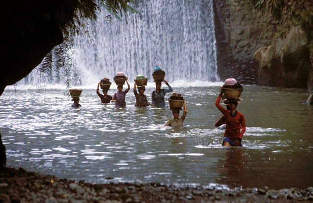 Women carry gravel from the river to be taken to a construction site in Indonesia. Credit © Maillard J. /ILO