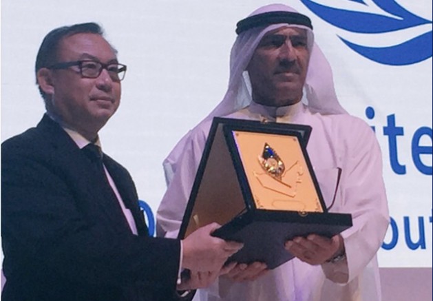 H.E. Komate Kamalanavin, Amb of the Kingdom of Thailand to UAE, on behalf of G77 and China, receives award from #UAE & Zayed F @ #GSSD2016