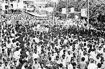 Photo: Dinu Alam on Facebook/Dinu Alam on English Wikipedia (https://commons.wikimedia.org/wiki/File:Rally_of_Nov_10,_1987_-_1.jpg), „Rally of Nov 10, 1987 – 1“, https://creativecommons.org/licenses/by-sa/3.0/legalcode