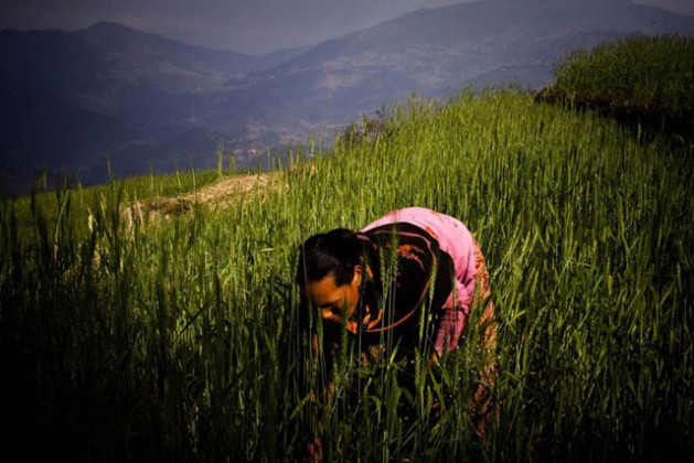 A woman farmer working in a wheat field in rural Nepal. Photo: FAO/Saliendra Kharel