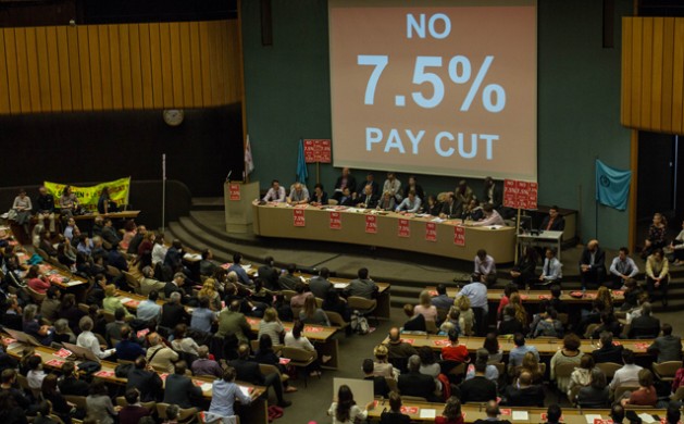 UN staff in Geneva protesting proposed pay cuts. Credit: UN photo