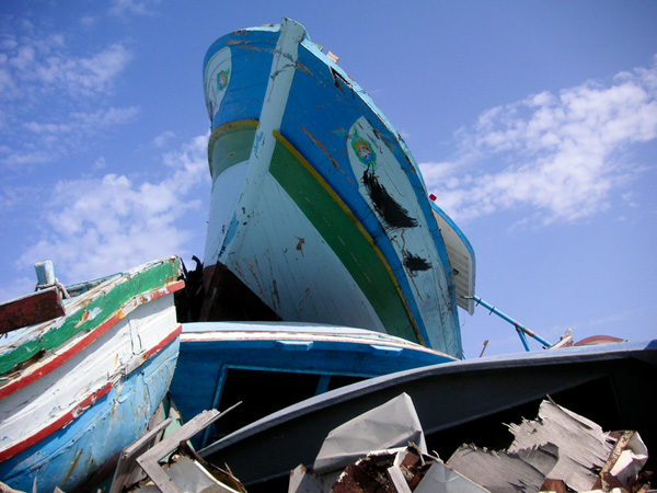 The “boat cemetery” in Lampedusa where the boats used by the migrants are stored to be destroyed later. Credit: Peter Schatzer / UN Migration Agency (IOM) 2006