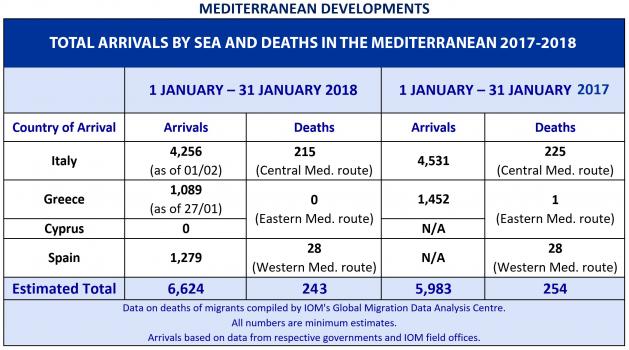 These casualties bring to 246 the total number of fatalities on the Mediterranean Sea through the first month of 2018. That compares with 254 at this time in 2017.