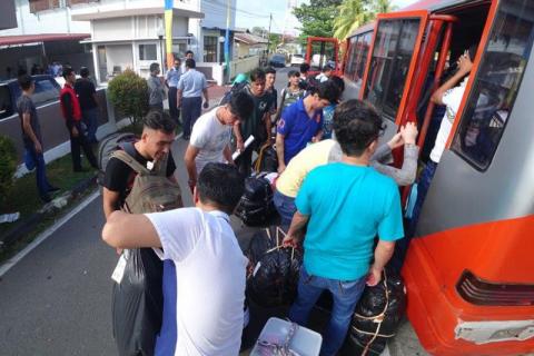 Refugees leave Tanjung Pinang immigration detention centre for new community housing. Credit: UN Migration Agency
