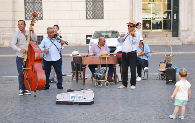 - During the past recent years, the city of Rome has experienced a rise in the presence of musicians in its streets and in particular those playing traditional sounds. It does not take a long time, while walking in the streets of Rome, to see a band playing joyful traditional sounds in Piazza Navona. The group renamed itself “Colosseo Band” but they are all from Eastern Europe. A double bass, violins, guitars and a xylophone: this unique assortment gives rise to an explosion of pleasant sounds that make people dancing in the same square.