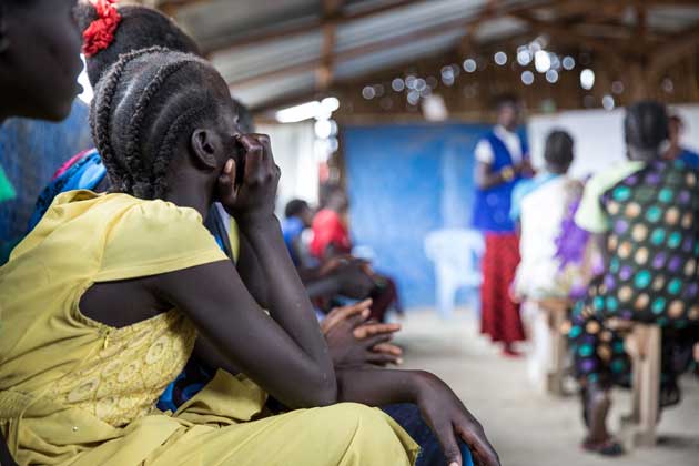 School girls leaning about HIV and hygiene in South Sudan. Photo: Amanda Nero / IOM (2017)