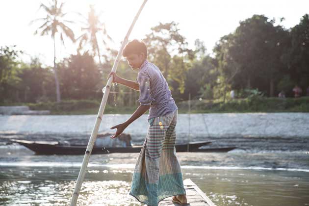 Boy on his boat in Sirajganj where a large community is affected by river erosion in Bangladesh. Photo: Amanda Nero / IOM (2016)