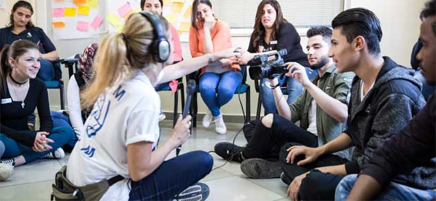 Teaching the basics of operating a professional camera with participants in Amman, Jordan. Photo: Amanda Nero/UN Migration Agency (IOM) 2017