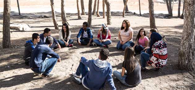 Youth participants in Jordan discussing how to film the closing scene. Photo: Amanda Nero/UN Migration Agency (IOM) 2017