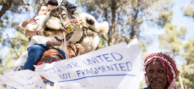 Unexpectedly, a Bedouin and his camel passed by when the participants were shooting one of their scenes, and he kindly agreed to take part in the film! Photo: Amanda Nero/UN Migration Agency (IOM) 2017