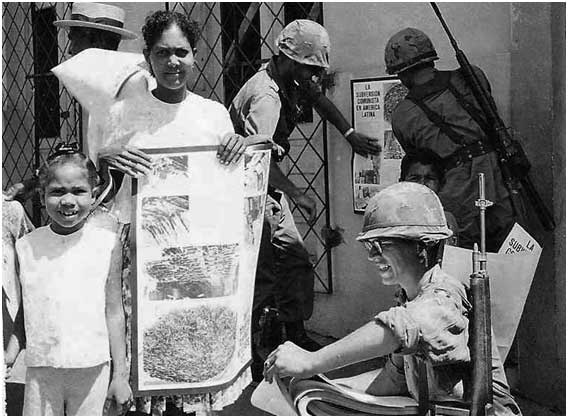 1st US PSYWAR (Psychological War) battalion hands out anti-communist posters in Santo Domingo (Dominican Republic), 1965.