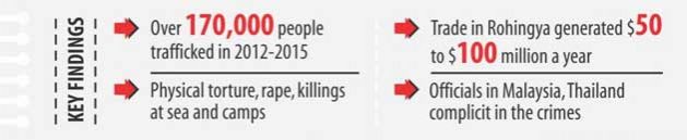 During 2012-15, more than 170,000 people boarded ships from Myanmar and Bangladesh bound for Malaysia and Thailand, and the trade over Rohingyas is estimated to have generated between $50 and $100 million a year.