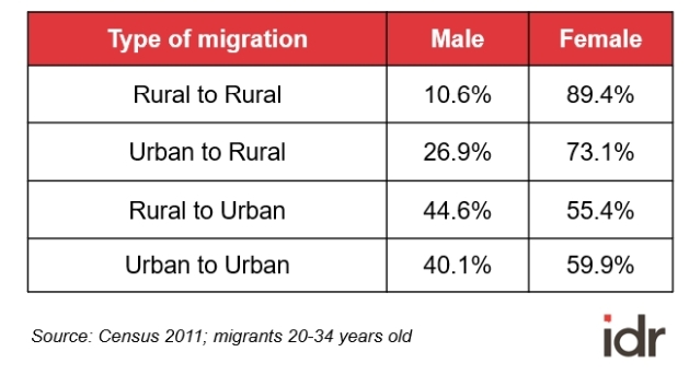 Census 2011 revealed that women form almost 70 percent of the internal migrant community.