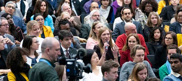 Young people pose questions to Secretary-General António Guterres during a UN75 event with youth at the Graduate Institute in Geneva. António Guterres said despite youth engagement during this period – including in the 2016 peace process in Colombia and in shaping the Global Compact on Refugees two years later – opportunities for them to contribute remain inadequate. “The world cannot afford a lost generation of youth, their lives set back by COVID-19 and their voices stifled by a lack of participation”, he said. “Let us do far more to tap their talents as we tackle the pandemic and chart a recovery that leads to a more peaceful, sustainable and equitable future for all”. Credit: UN Photo/Jean Marc Ferre