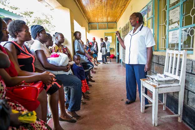 Family planning counselor and nurse speaks to group at clinic in Nakuru, Kenya. Credit: Sala Lewis