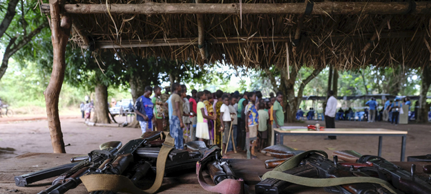Firearms laid down by child soldiers associated with armed groups in South Sudan. Credit: UNICEF/Rich