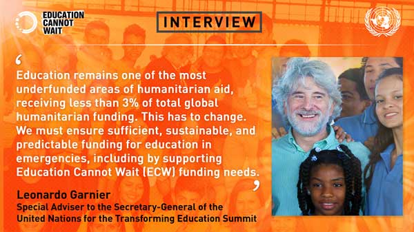 ECW: The Transforming Education Summit is an opportunity to rekindle international political and financial commitment to education as a pre-eminent public good. You have an academic and professional background in both economics and education. Why is financing for education – including for global funds like Education Cannot Wait, the UN global fund for education in emergencies – a priority?