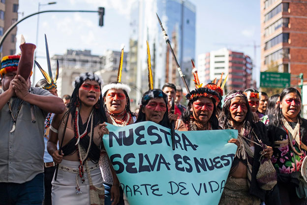 Indigenous Peoples from Alianza Ceibo fight to counter environmental degradation and protect more than 2 million hectares of primary rainforest in four provinces and 70 communities in the Ecuadorian Amazon. Credit: Alianza Ceibo
