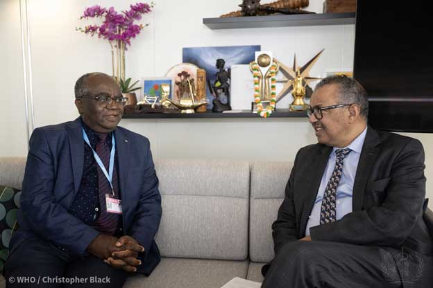 Director-General of the World Health Organization (WHO) Dr. Tedros Adhanom Ghebreyesus meets with Dr Wenceslas Nyamayaro, Acting Chief Director for Public Health of Zimbabwe to discuss the current issues dealing with health, wellbeing, and economy. Credit: Christopher Black/WHO Photo Library