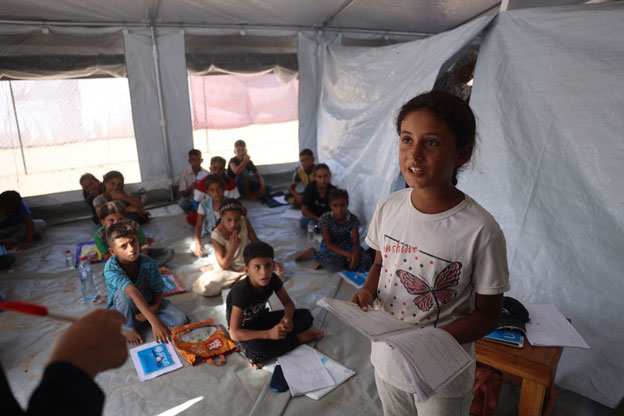 A group of displaced children in a shelter in northern Gaza. Credit: UNICEF/Mohammed Nateel