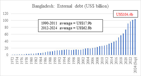 Development partners – traditional and non-traditional – cannot deny their complicity. The most culpable is the World Bank, followed by the Asian Development Bank (ADB) and Japan International Cooperation Agency (JICA). The shares of Bangladesh’s external debt liabilities to them are around 29%, 23% and 18%, respectively, totalling 70% of total external debt. Russia and China are Bangladesh’s main non-traditional development partners, with their respective shares of total external debt at 11% and 7%. All donors offered loans rampantly to the fascist regime to achieve their strategic and business interest, ignoring its extensive corruption and wide-spread human rights violations.