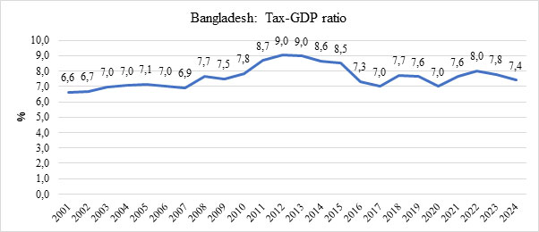 One direct damage of aid addiction is the lethargy in mobilising domestic resources – Bangladesh’s tax-GDP ratio (around 7%) is not only low compared with the averages for low-income countries (13.5%) and middle-income countries (18.9%), but has also been declining from its peak of around 9% in 2012 since its borrowing from development partners accelerated.