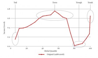 In 2013, Christoph Lakner and Branko Milanovic published a graph—quickly dubbed the “elephant chart”—that depicts changes in income distribution across the world between 1988 and 2008.