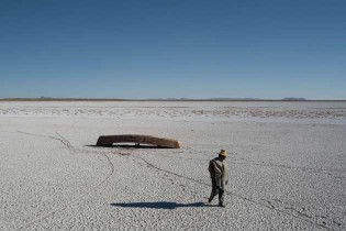 Tire tracks stretched across the flat lake bed to the horizon. We followed them in a Suzuki 4x4, looking for clues about what’s happened to Poopó, once Bolivia’s second largest lake, which has vanished into the thin air of the Andean highlands.
