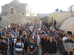 At Dar el-Eitam Islamic Orphanage, a secondary school under Waqf (Islamic trust) supervision located in Jerusalem’s walled Old City, Palestinian twelfth graders prepare their Tawjihi (A-Level) in history. On the wall behind the teacher are two portraits of “martyrs” killed during the Second Intifadah uprising (2000-2005).